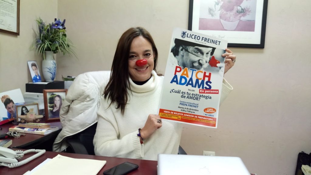“Este taller lo estamos organizando entre Patch Adams, su esposa Susan y el Liceo Freinet, es un evento que tiene como objetivo fomentar los valores, el amor, la felicidad, y el cuidado hacia otras personas. Personalmente yo he estado trabajando con Patch Adams durante todo este año en diferentes actividades y en diferentes partes, y platicando un poco con él acerca de la labor de la escuela, de la manera en como estamos formando a los jóvenes, sirviendo a la comunidad, le pareció interesante armar esta conferencia titulada “¿Cuál es tu estrategia de amor?”, dijo la directora.