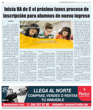 18 EL HERALDO DE SALTILLO | Viernes 02 de Agosto de 2019