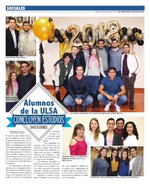 de la ULSA Los alumnos graduados de la carrera de Ingenieros en Mecatrónica.