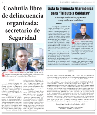 14 EL HERALDO DE SALTILLO | Viernes 15 de Noviembre de 2019