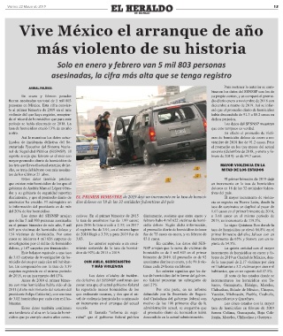 de 2018, es un incremento del 13%. Los datos oficiales de inciden- tos de homicidios del informe del gobier- El resto de los estados donde se