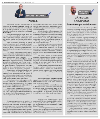 pedidos que apenas sobrepasan las 300 mil toneladas, rios que destacan como productores y de agrupa- queño pero hermoso Saltillo, se escucharon 5 balazos, 5