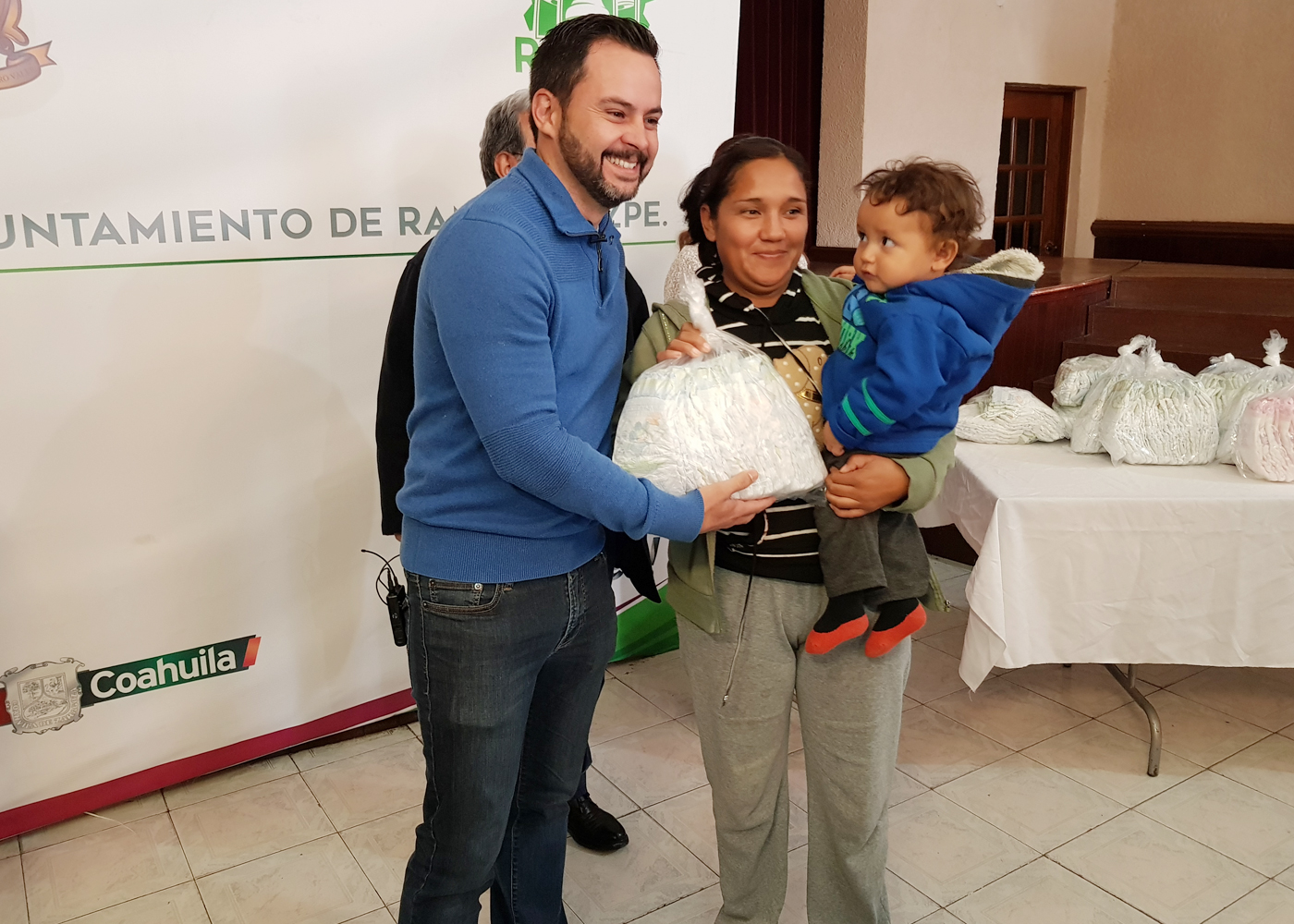 El presidente del DIF Ramos Arizpe, Alejandro Blasco Flores, encabezó este lunes la primera entrega de apoyos a madres en situación vulnerable que se realiza en esta administración, la cual consistió en un donativo de pañales por parte de la empresa Kimberly Clark.
