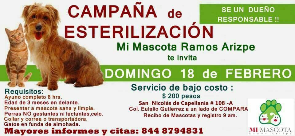 La presidenta del patronato de Mi Mascota, Claudia Leza Ortega, dio a conocer que desde que la asociación inició su labor en Ramos Arizpe, se han podido atender a más de mil mascotas, perros y gatos, con esterilizaciones gratuitas o a bajo costo, por medio de las campañas que periódicamente realizan a petición de los ciudadanos.
