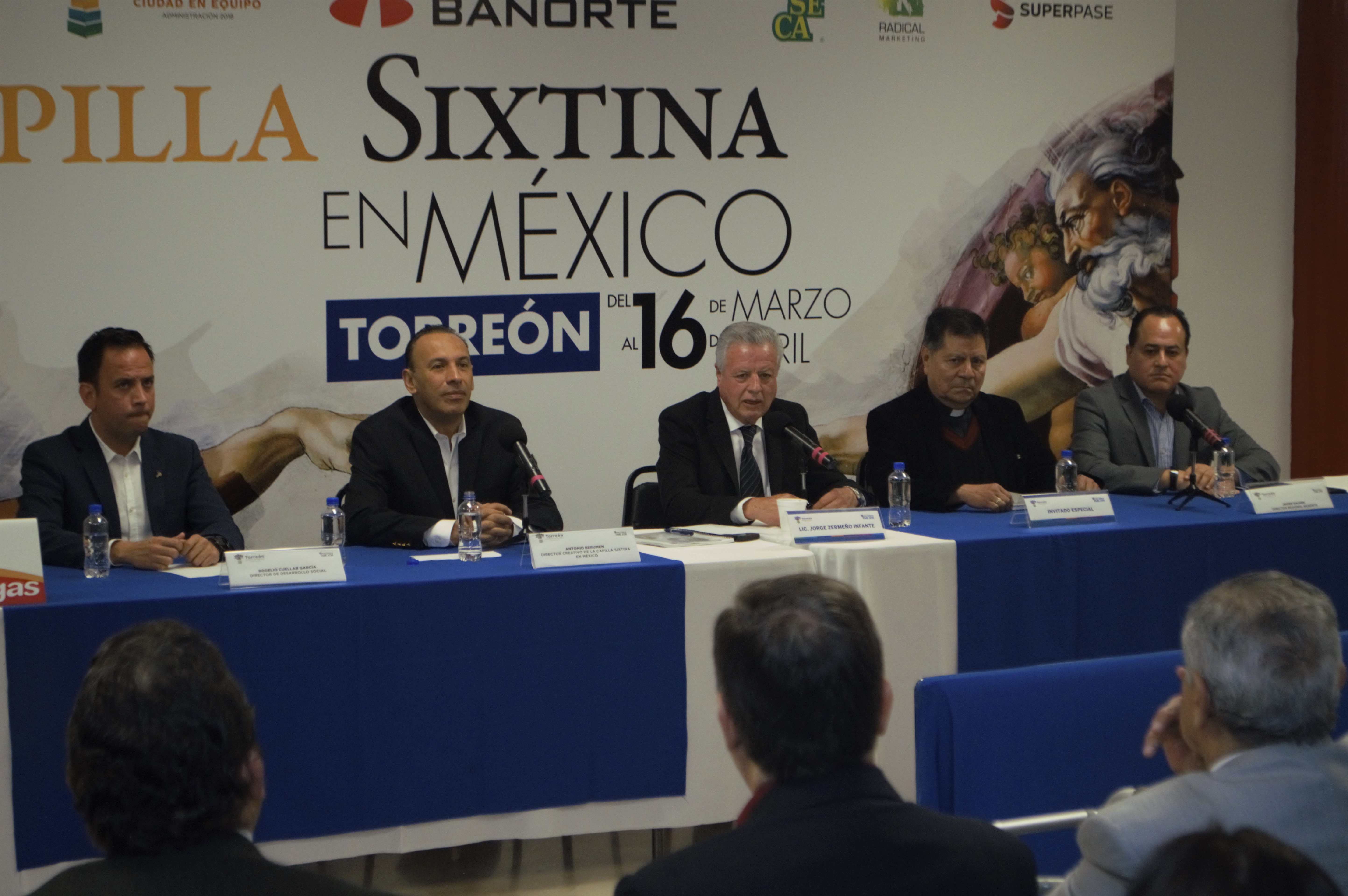 La rueda de prensa celebrada fue presidida por el alcalde Jorge Zermeño Infante; en representación del Obispo de Torreón acudió el padre José Luis Escamilla Estrada; el director creativo de la Capilla Sixtina en México, Antonio Berumen; así como el director regional de Banorte, Javier Galván y el director de Desarrollo Social de Torreón, Rogelio Cuéllar García.