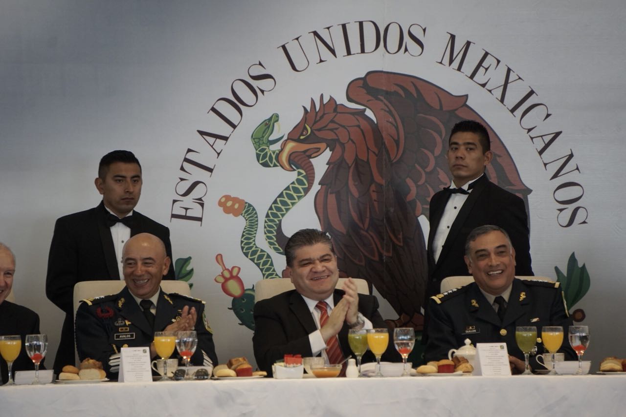Riquelme Solís dijo que dentro de la coordinación que mantiene el Estado de Coahuila con las Fuerzas Armadas, se sigue mandando el mensaje hacia la sociedad de que ambas instituciones continuarán juntas, y de que su gobierno seguirá teniendo como prioridad la relación con el Ejército, así como la de atender las necesidades de los elementos castrenses y los pertenecientes de las corporaciones estatales para mantener la paz y la tranquilidad del Estado.