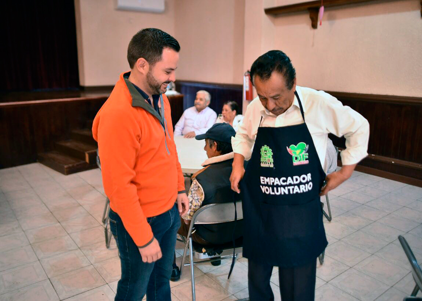 Dicha entrega de uniformes se llevó a cabo en el desayuno mensual que el DIF municipal organiza para el grupo de 97 empacadores voluntarios.