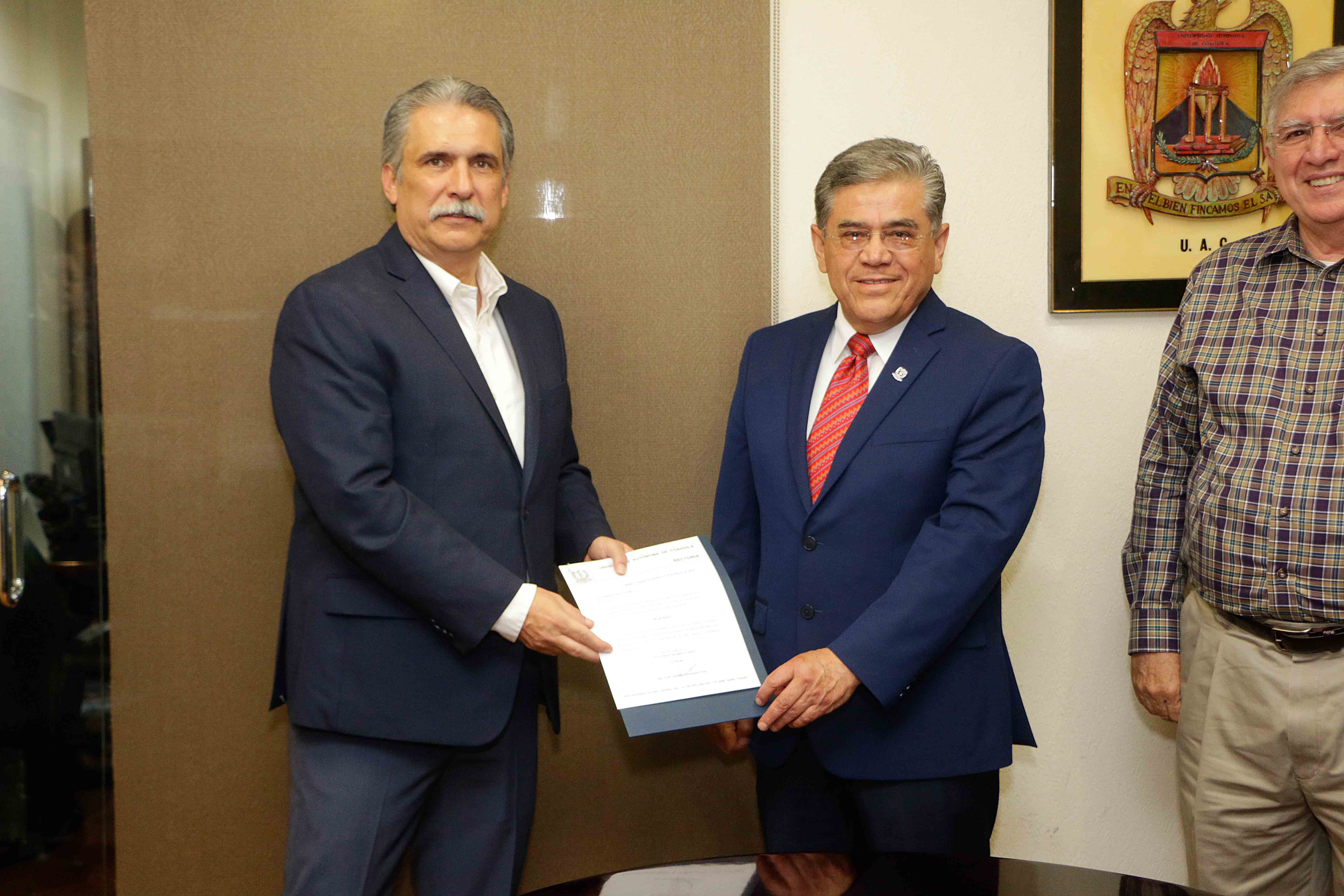 Este miércoles el rector de la Universidad Autónoma de Coahuila, Salvador Hernández Vélez, entregó el nombramiento como Oficial Mayor a Daniel Garza Treviño, quien se desempeñaba como Coordinador de Relaciones Internacionales.