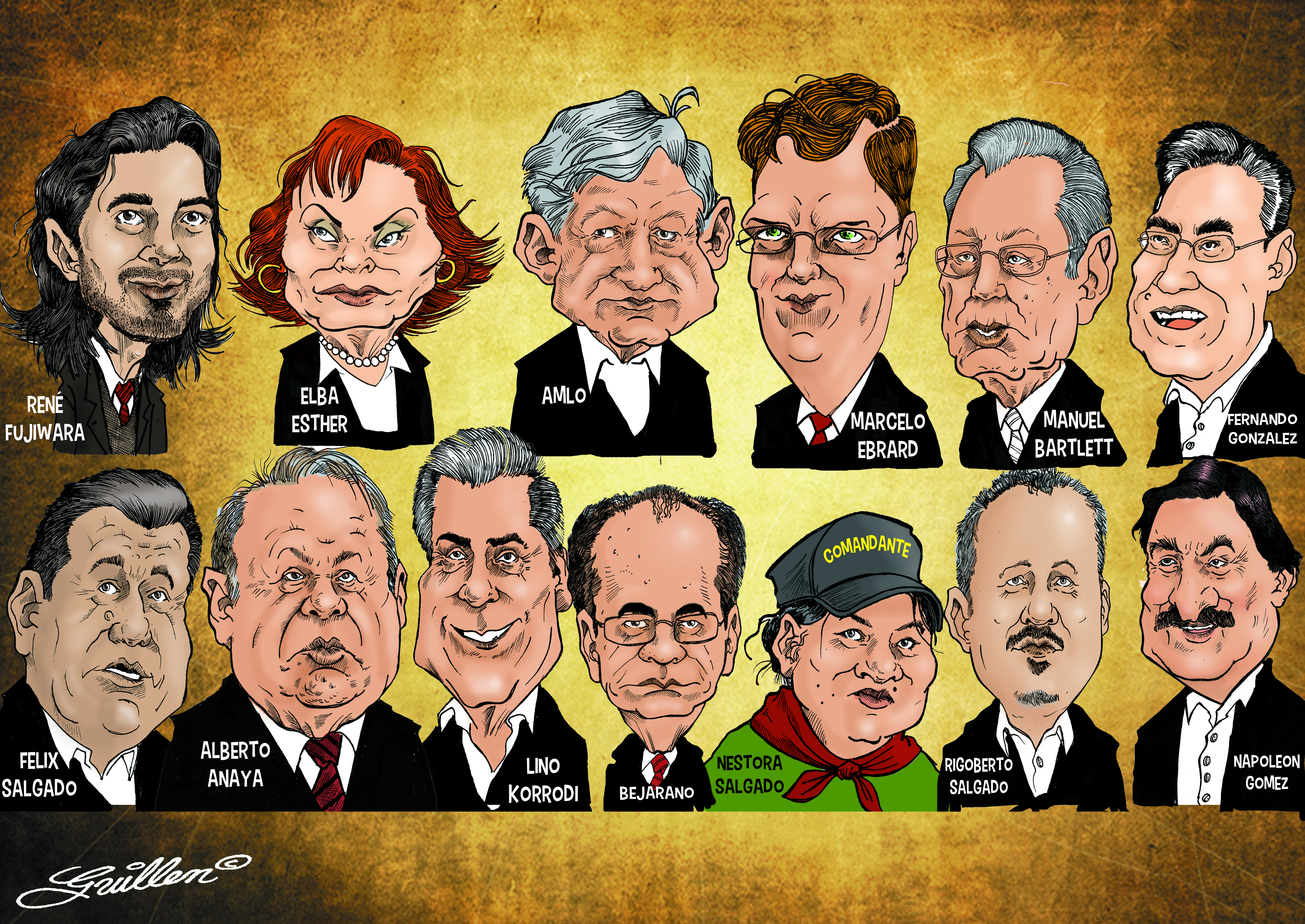 1) Napoleón Gómez Urrutia. 2) Elba Esther Gordillo. Estos dos; el minero más rico del mundo y la maestra más rica y corrupta del mundo. 3) El yerno de Elba Esther; Fernando González Sánchez y el nieto René Fujiwara Montelongo, metidos en el PANAL y que hoy se la juegan con AMLO. “Nosotros no luchamos por cargos. Luchamos por ideales y principios”, han dicho los cínicos y mentirosos. 4) René Bejarano (a) el “Señor de las Ligas”. Todo mundo lo conoce debido a videos en la TV. 5) Marcelo Ebrard, ex Jefe de Gobierno de la CDMX, manchado por actos de corrupción en la Línea 12 del Metro. 6) Manuel Bartlett, impuro y mancillado –de por vida– por haber tumbado el sistema para hacer ganar a Carlos Salinas de Gortari. 7) Alberto Anaya, propietario del Partido del Trabajo (PT). Además, a Anaya y a su esposa se les acusa de haber lavado 100 millones de pesos del gobierno de Nuevo León. En breve les habrán de dictar órdenes de aprehensión. 8) Otro que se suma a la “mafia del poder” de AMLO es Lino Korrody, quien consiguió y lavó cientos de millones de pesos para la campaña presidencial panista de Vicente Fox. 9) Uno más es Rigoberto Salgado, Delegado Político de Tláhuac, a quien se le acusa de apoyar actividades del narco y crimen organizado. 10) El tristemente célebre Félix Salgado Macedonio, alcalde de Acapulco, diputado federal y senador que se ha visto involucrado en decenas de escándalos desde borracheras en la calle, hasta amistades cercanas con grupos del narcotráfico.