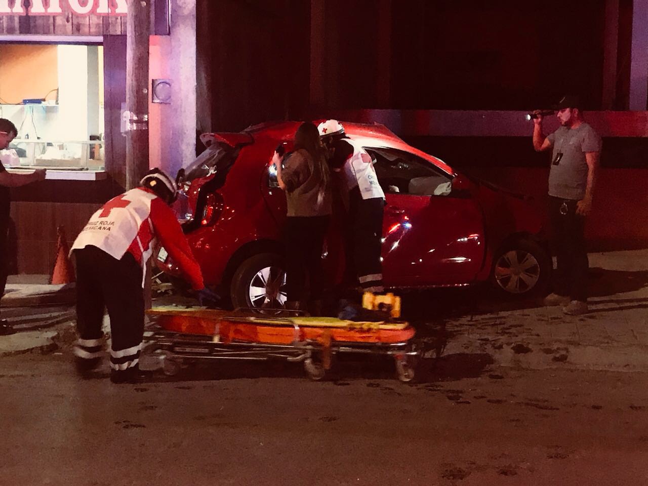 Paramédicos de Bomberos y Cruz roja acudieron al lugar para auxiliar a los jóvenes que tras el impacto quedaron prensados y con las conocidas quijadas de la vida destruyeron los fierros retorcidos para sacar a tres jóvenes que presentaron lesiones graves para trasladarlos al Hospital Muguerza.