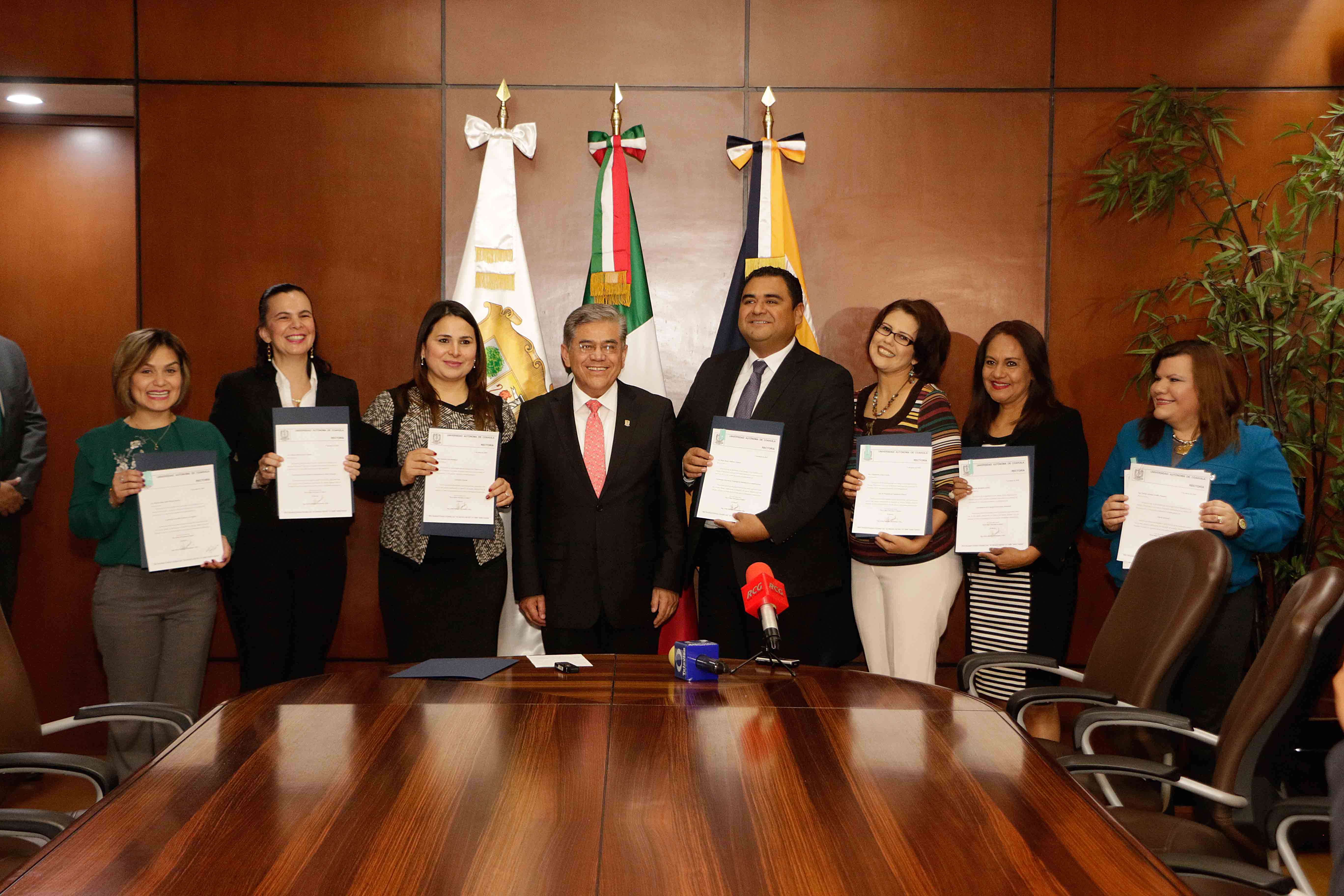 En la Sala de juntas del Despacho de la Rectoría de la Universidad Autónoma de Coahuila, el rector Salvador Hernández Vélez, entregó nombramientos a titulares de diversas coordinaciones de la máxima casa de estudios.