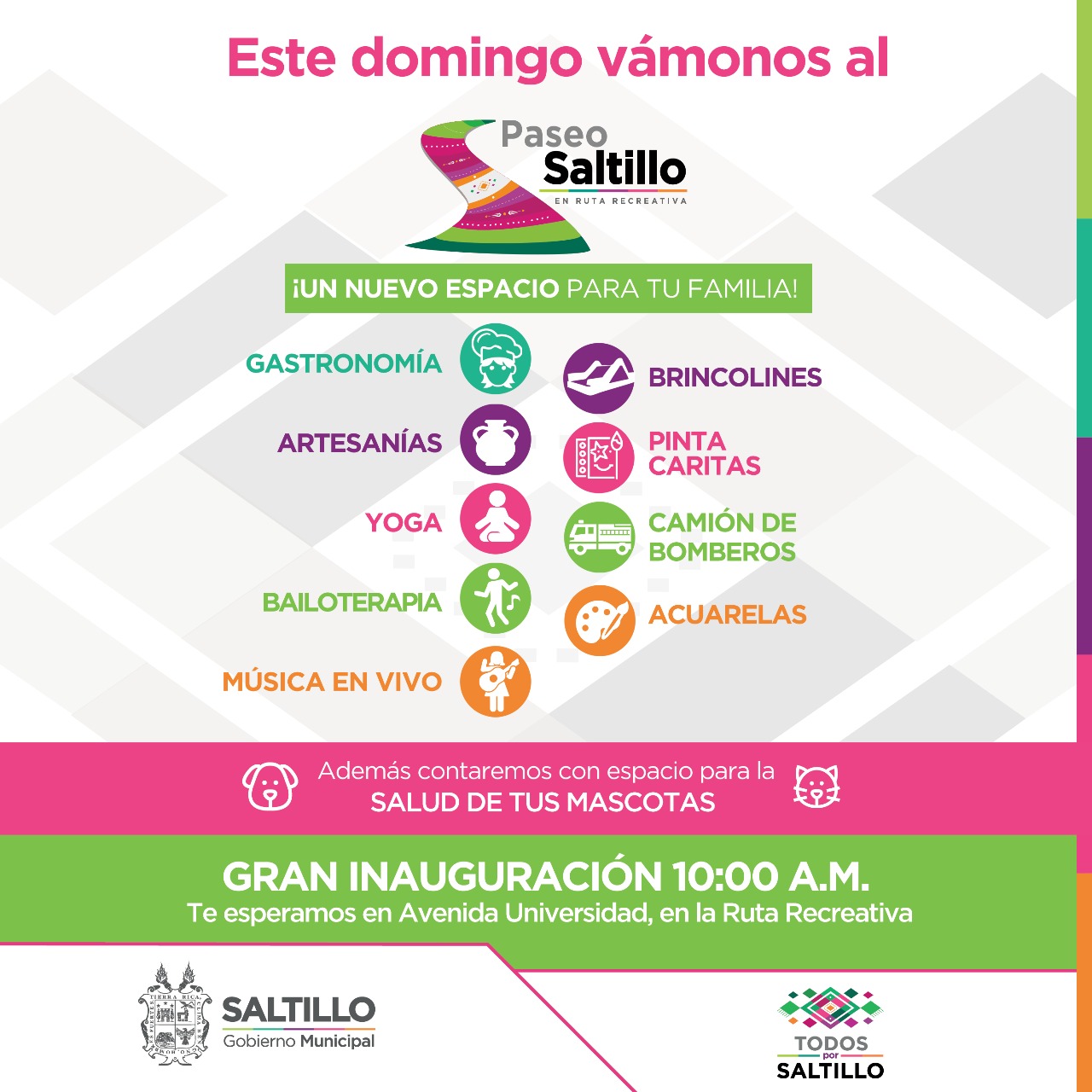 Este domingo, a las 10:00 de la mañana será inaugurado el “Paseo Saltillo”, en el que se ofrecerá a las familias un nuevo espacio para la recreación y la convivencia.
