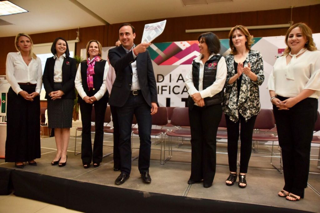 Acompañado de su esposa, Paola Rodríguez López, y de la Presidenta Honoraria del DIF Saltillo, Liliana Salinas Valdés, el Alcalde de Saltillo recibió las propuestas y resultados del foro, en el que participaron 260 mujeres saltillenses, entre ellas amas de casa, empresarias, docentes y servidoras públicas.