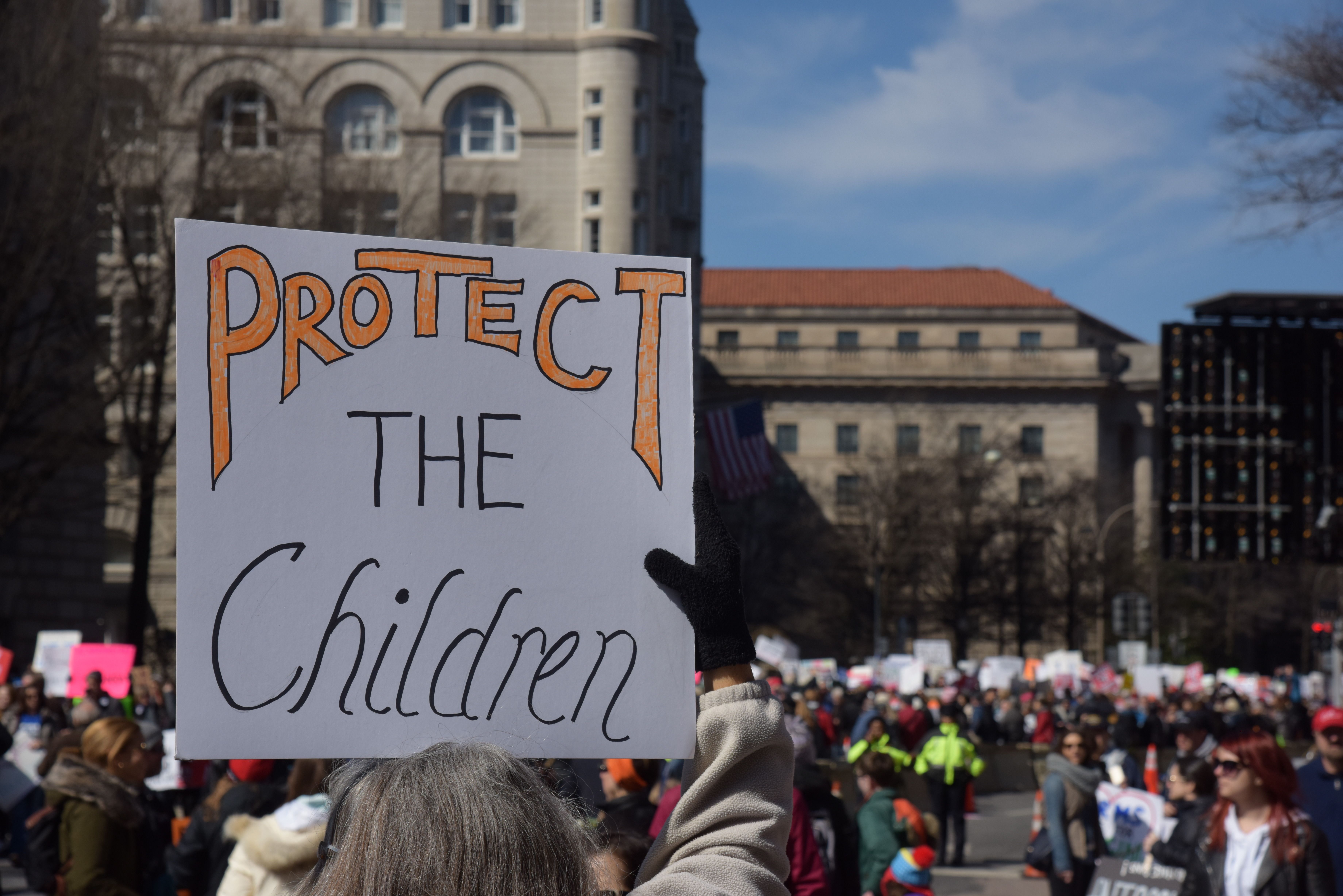 El periodista Jon Sopel, de la BBC en Washington, relató que los manifestantes marcharon con fotografías de estudiantes y maestros asesinados en tiroteos escolares.