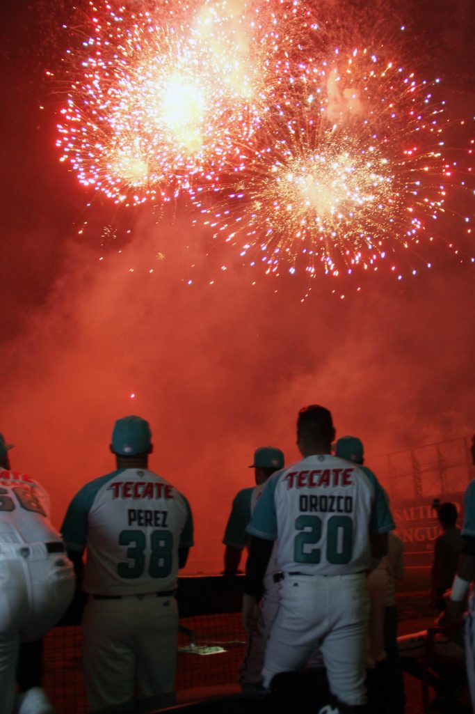 Más adelante, luego del circo aéreo de “Metamorfosis en el Cielo” con un performance por todos los pasillos y alrededor del todo el terreno de juego para deleitar a los aficionados, fue sellado con un espectacular show de pirotecnia de más de 3 minutos iluminando el cielo saltillense ante un lleno hasta las lámparas en el Madero.