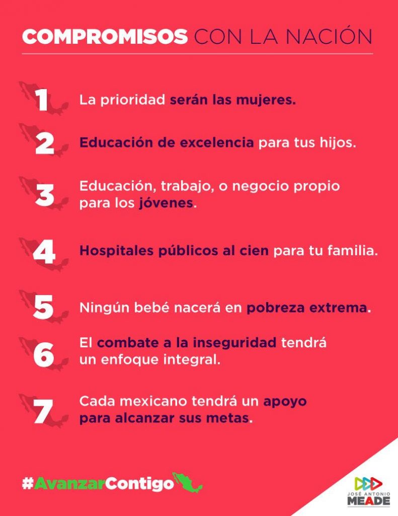 En un acto celebrado en el Centro de Convenciones Siglo XXI de la capital yucateca, al que asistieron más de 15 mil militantes y simpatizantes de los tres partidos que integran la coalición que lo postula, José Antonio Meade detalló las propuestas que acompañan a cada uno de sus compromisos.