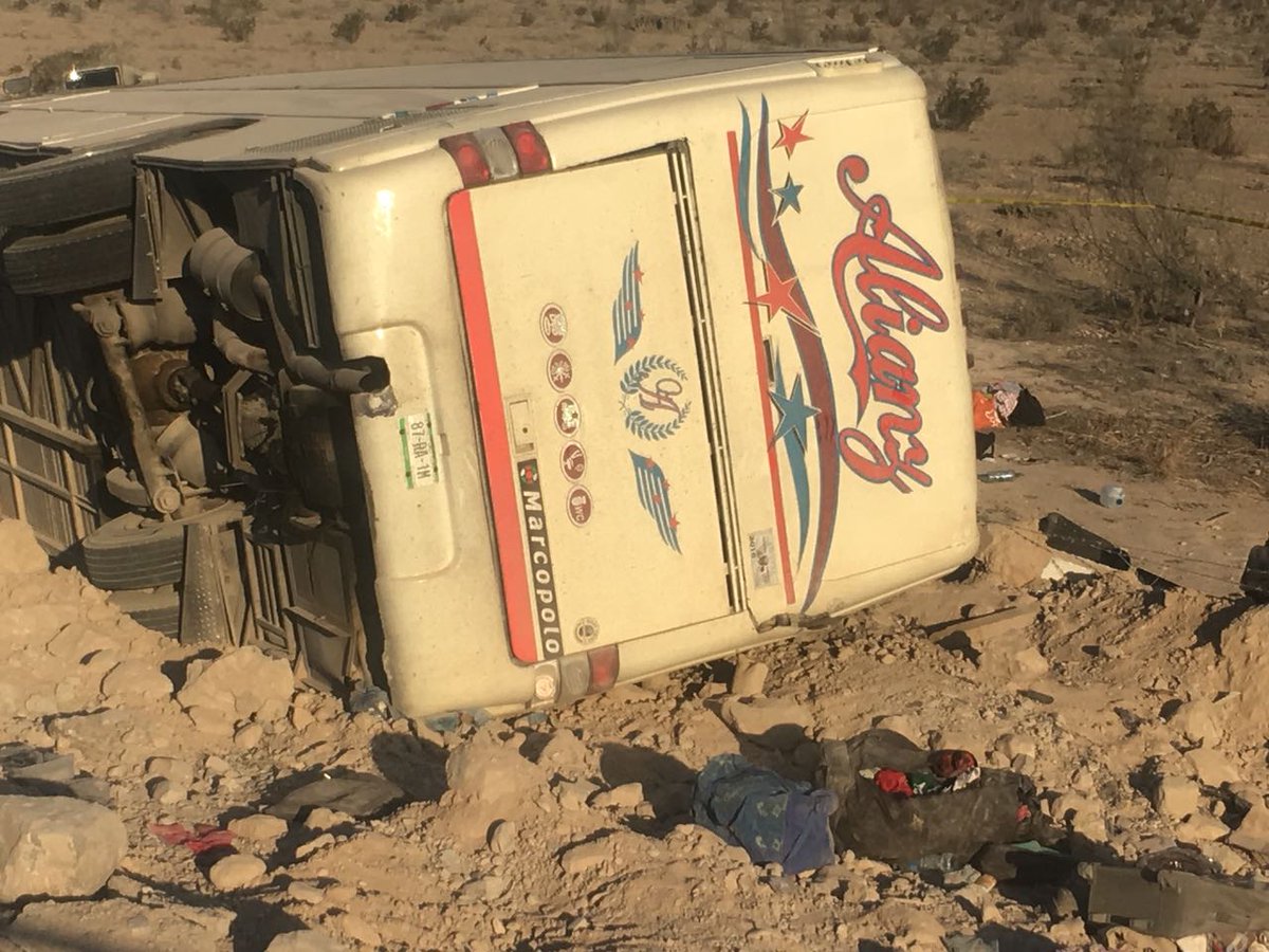 Siete muertos tras volcadura de camión de pasajeros en Cuatro Ciénegas