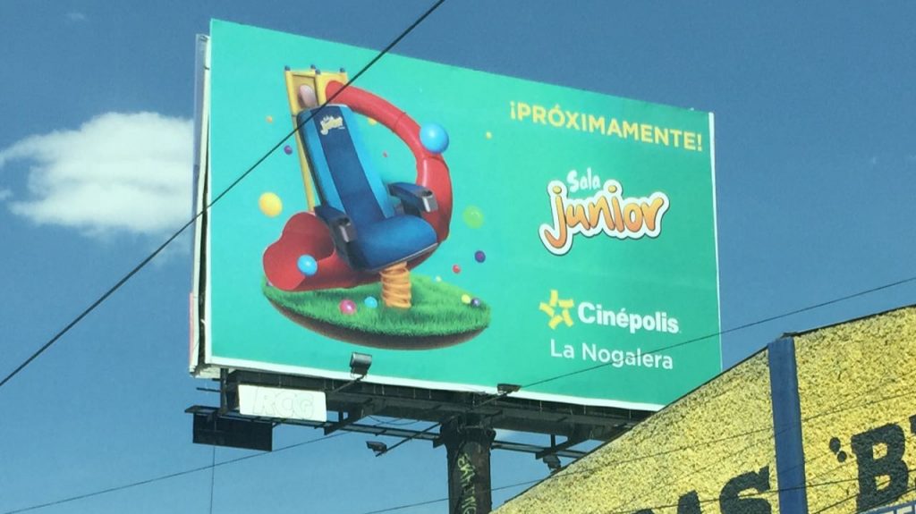 En un espectacular, la empresa anuncia que próximamente será inaugurada esta sala en la plaza comercial Nogalera, al sur de Saltillo.