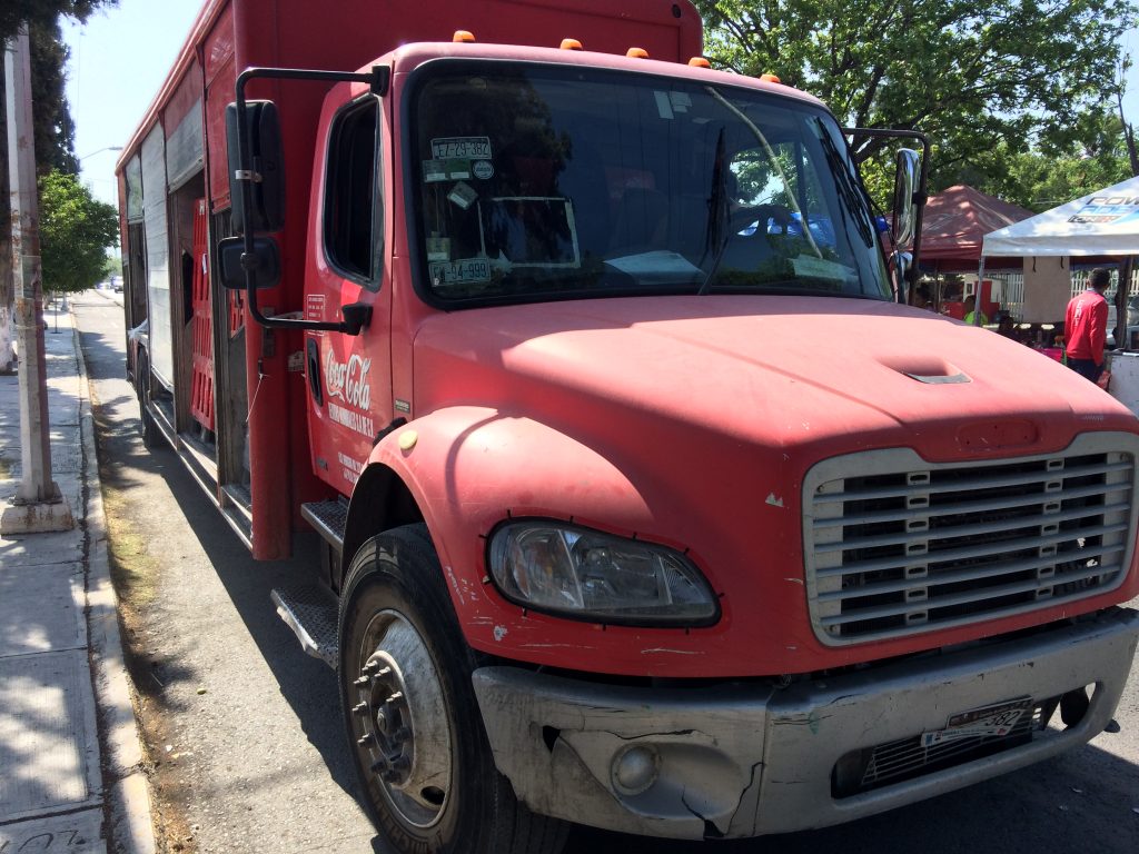 Camión de Coca-Cola invade la ciclovía de Saltillo