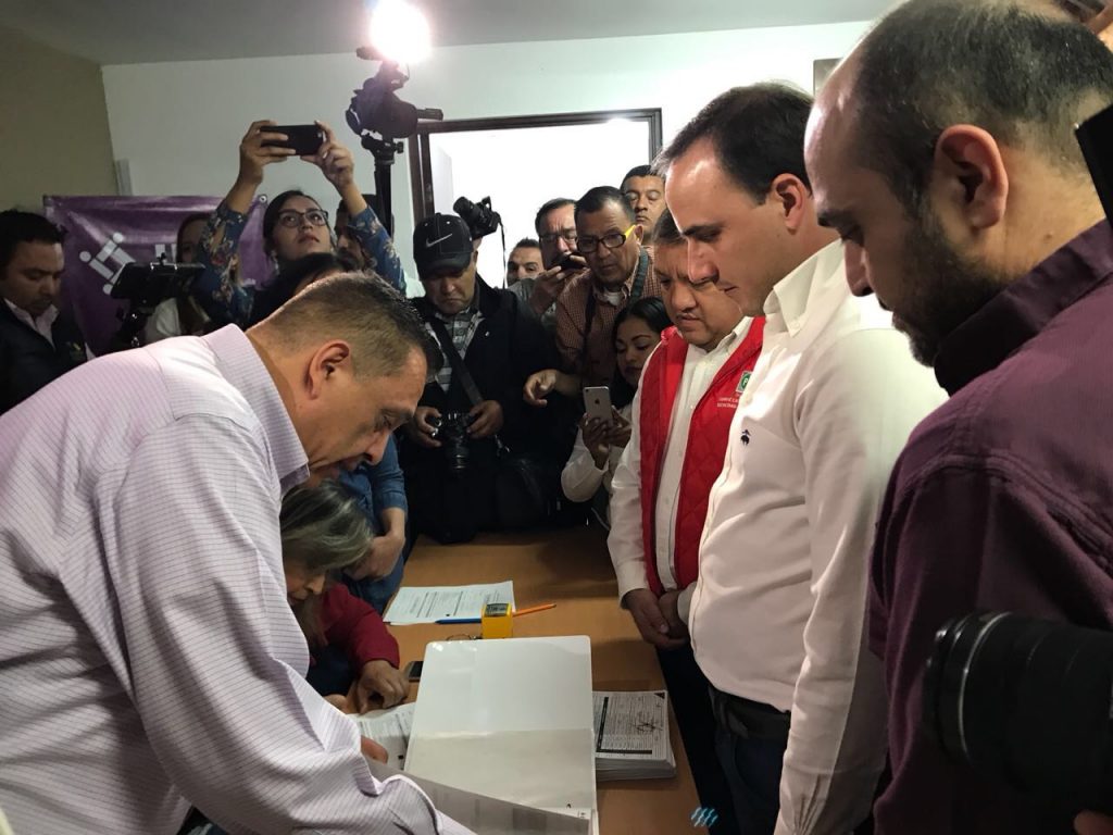 Manolo Jiménez acudió la mañana de este sábado a registrarse ante el IEC para contender por el periodo de tres años al frente de Ayuntamiento de la capital coahuilense, acompañado de amigos y familiares.