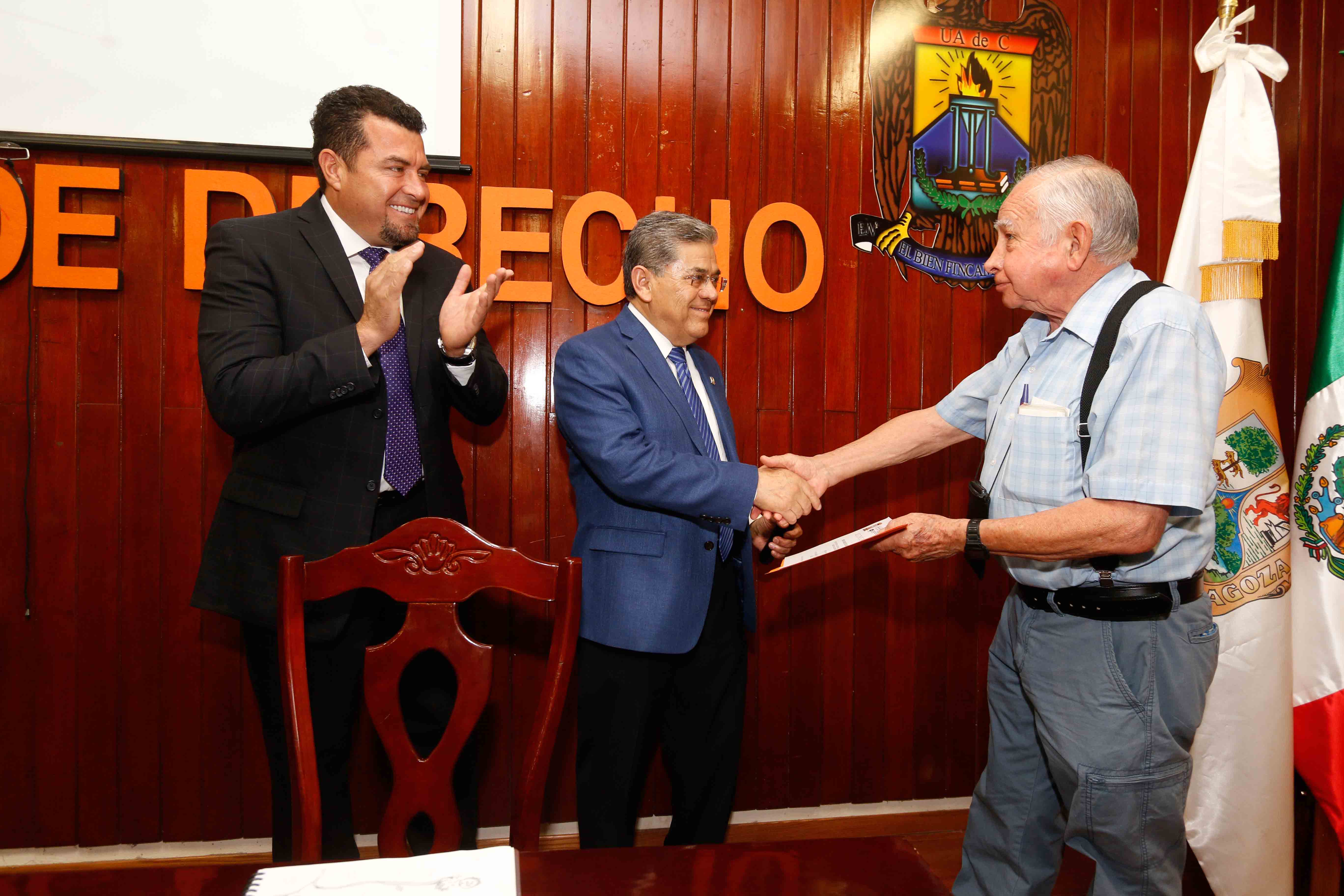 Asimismo, el director Carlos Centeno, le entregó el reconocimiento al rector Salvador Hernández por su participación en este evento para conmemorar el Día Internacional del Libro; posteriormente se trasladaron a la Sala de Juicios Orales e inauguraron el Concurso de Conocimientos, en el que participan alumnos de los distintos semestres. (EL HERALDO)