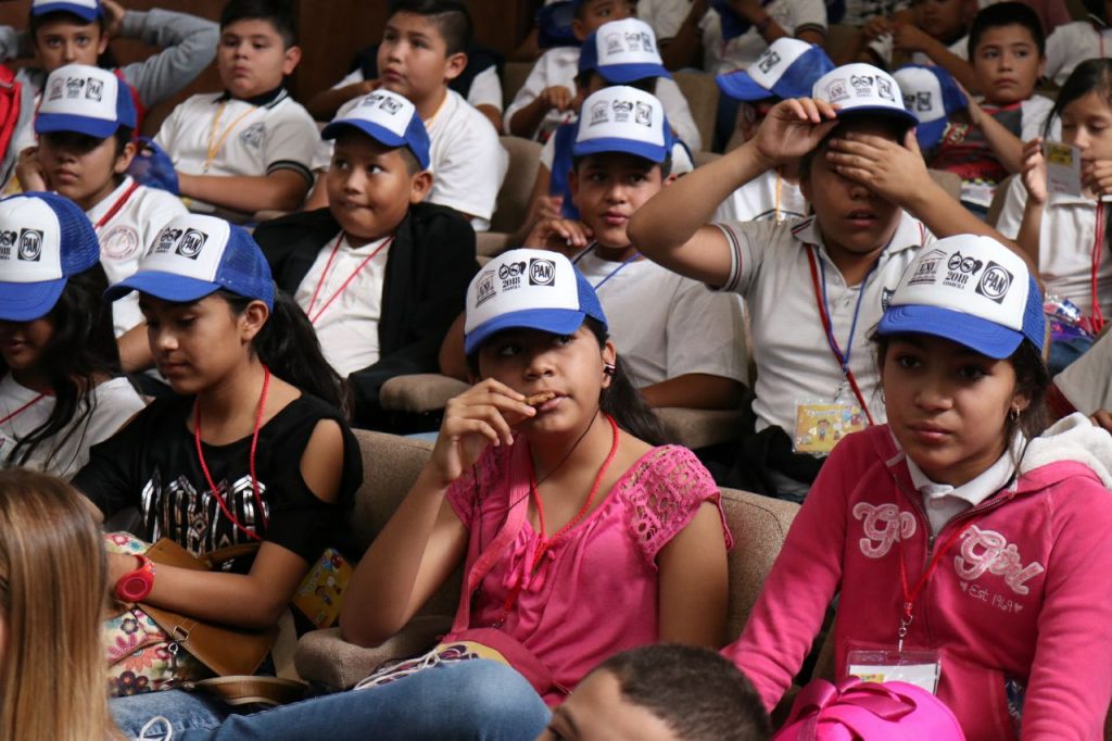 En la sesión, un grupo de menores ingresó al Salón de Plenos del Palacio del Congreso utilizando gorras de color azul y blanco con el logotipo de Acción Nacional, lo que evidentemente atenta contra los derechos de la infancia al ser utilizados los pequeños como recurso propagandístico – electoral.