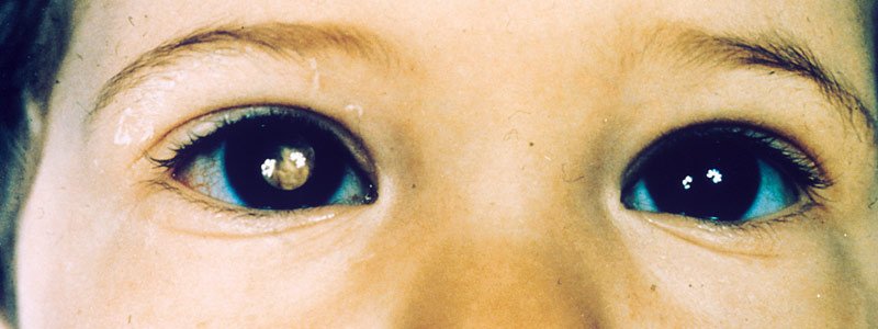 El principal signo para la identificación de la patología es la aparición de un reflejo blanco en la región pupilar ante la presencia de una luz que brille en el ojo, conocido como leucocoria. Ejemplo de ello es el flash de una cámara fotográfica.