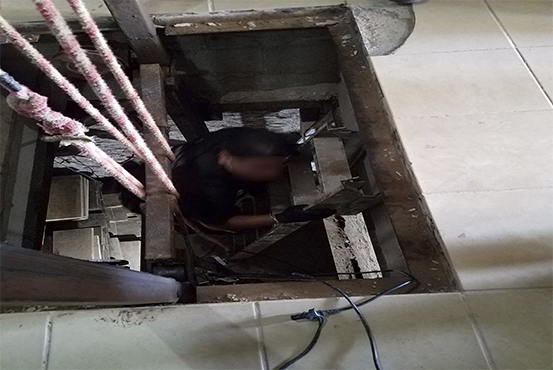 En un video divulgado por la procuraduría mexicana se observa que el acceso al pasadizo es una escalera construida de material metálico, junto a la cual corre un sistema de poleas.