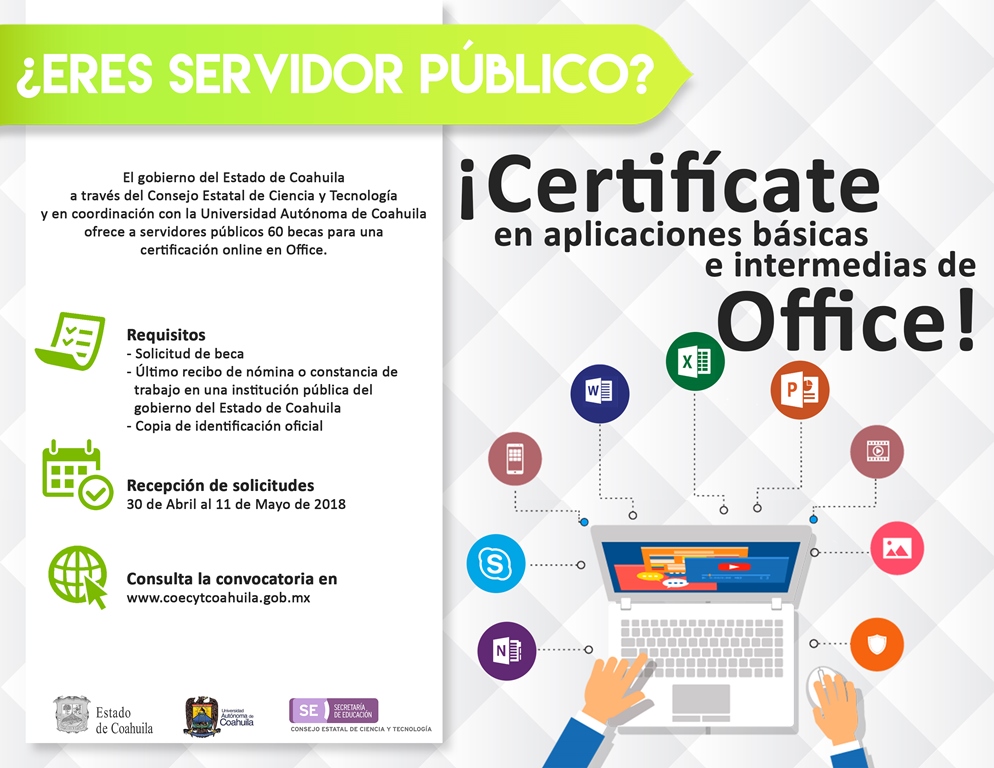 Se convoca a los servidores públicos del Gobierno estatal pertenecientes al Poder Ejecutivo, Legislativo y Judicial a participar en la convocatoria de 60 becas para “Certificación Office”.