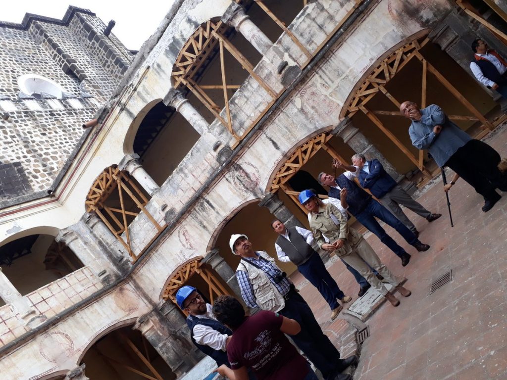 La reunión de trabajo se celebró en el atrio del ex convento, donde los expertos del INAH y de la UNAM explicaron la naturaleza de la intervención que se requiere para recuperar la estructura, entre ellos, el apuntalamiento de la nave, la espadaña y la torre.