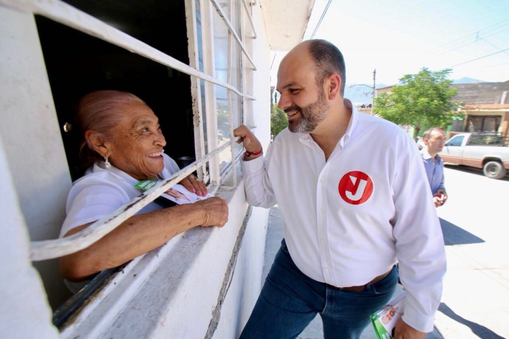 Jericó Abramo recorrió las calles de las colonias La Minita, San Isidro, Patria Nueva y Girasol, al surponiente de Saltillo, donde saludó de mano a sus habitantes y sumó votos al dar a conocer sus propuestas que lo llevarán al Senado de la República en las elecciones del próximo 1 de julio. (EL HERALDO)