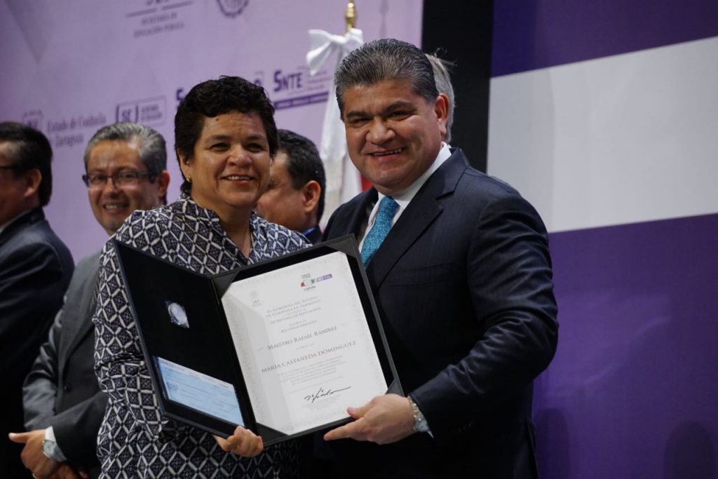 “Hoy, 765 docentes reciben este año una distinción, un signo más de la fortaleza de este gremio y de lo acendrado que está su legado en Coahuila y también entregamos la Presea al Mérito Magisterial”.