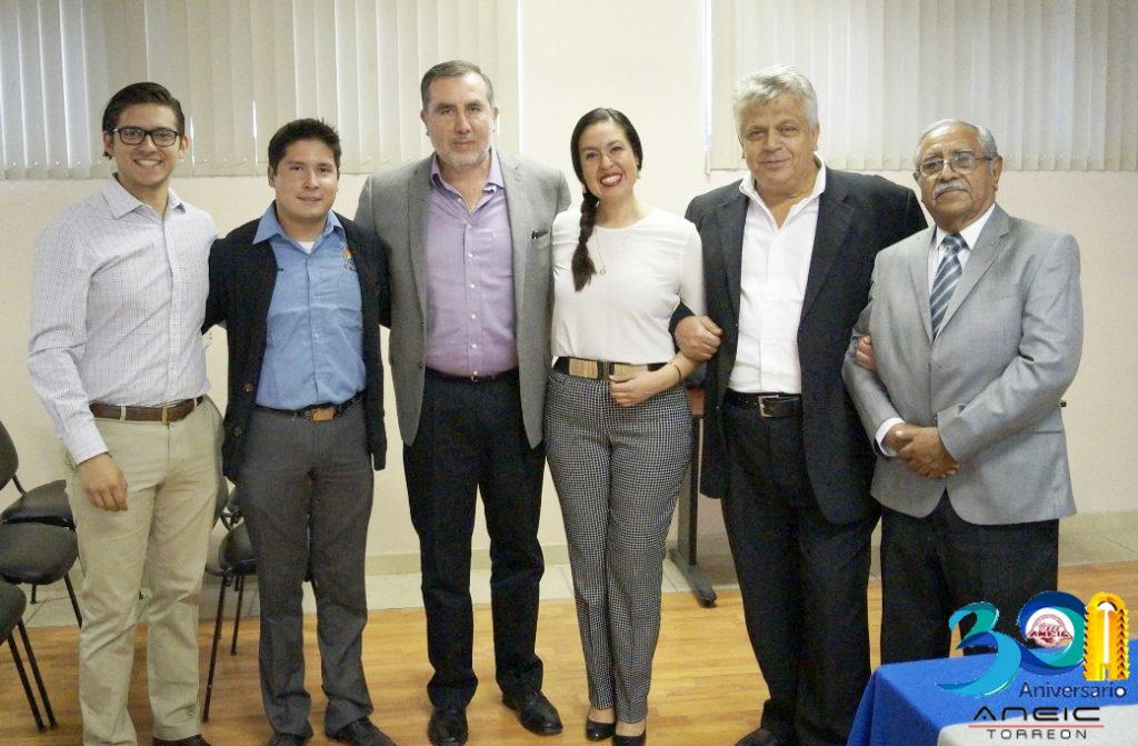 Durante la conferencia estuvieron presentes la coordinadora de Unidad Torreón, Lorena Medina Bocanegra; el director de la Facultad de Ingeniería Civil, José Ángel Delgado Trujillo; y el delegado de la ANEIC en la UA de C, Rogelio Perales Puente.