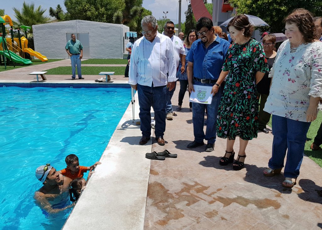 A pesar de que la alberca ya es utilizada por más de 400 alumnos durante toda la época de calor, la secretaria afirmó que contribuirían para techar este espacio y que pueda ser aprovechado también durante el invierno. (ROBERTO FRÍAS)