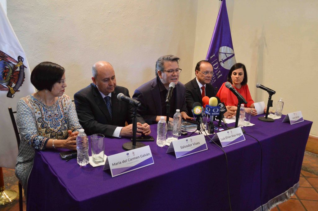 El director general de la AIDH, Luis Efrén Ríos Vega agradeció la presencia de Salvador Vives director general de Tirant Lo Blanch México, del subsecretario de Educación Media Superior y Superior, Francisco Osorio Morales, de la Consejera Jurídica del Gobierno del Estado, María del Carmen Galván Tello y de la secretaria académica de este instituto Irene Spigno.