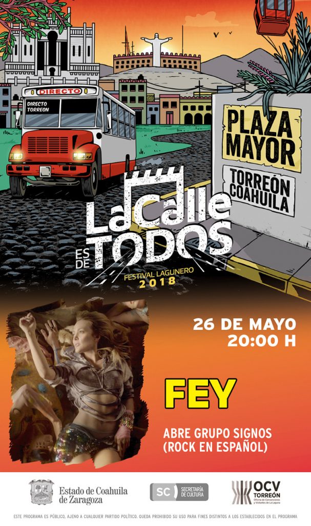 El sábado 26 será el Show de Fey, abre Signos (Rock en español), y el domingo 27 La Leyenda, abre La Dosis (norteño).
