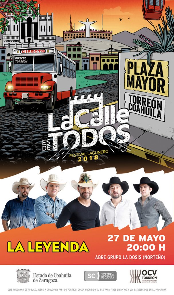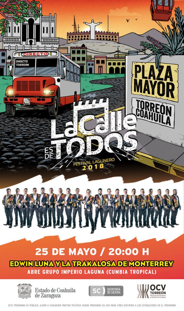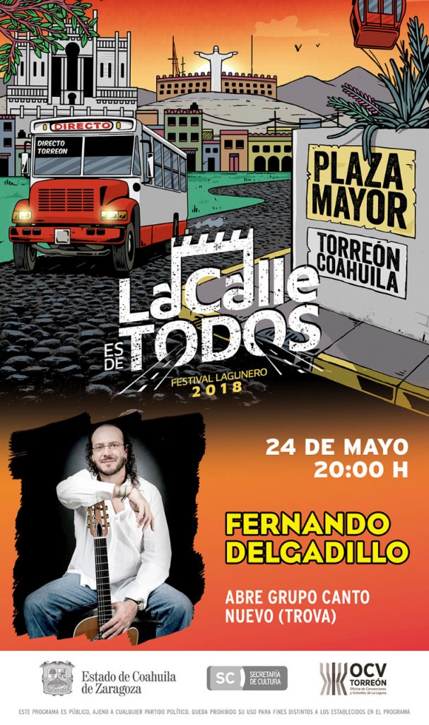 Torreón.- Con la presentación de Fernando Delgadillo, este jueves arranca en Torreón el Festival “La Calle es de Todos” en su edición 2018, que organiza el Gobierno del Estado a través de la Secretaría de Cultura.