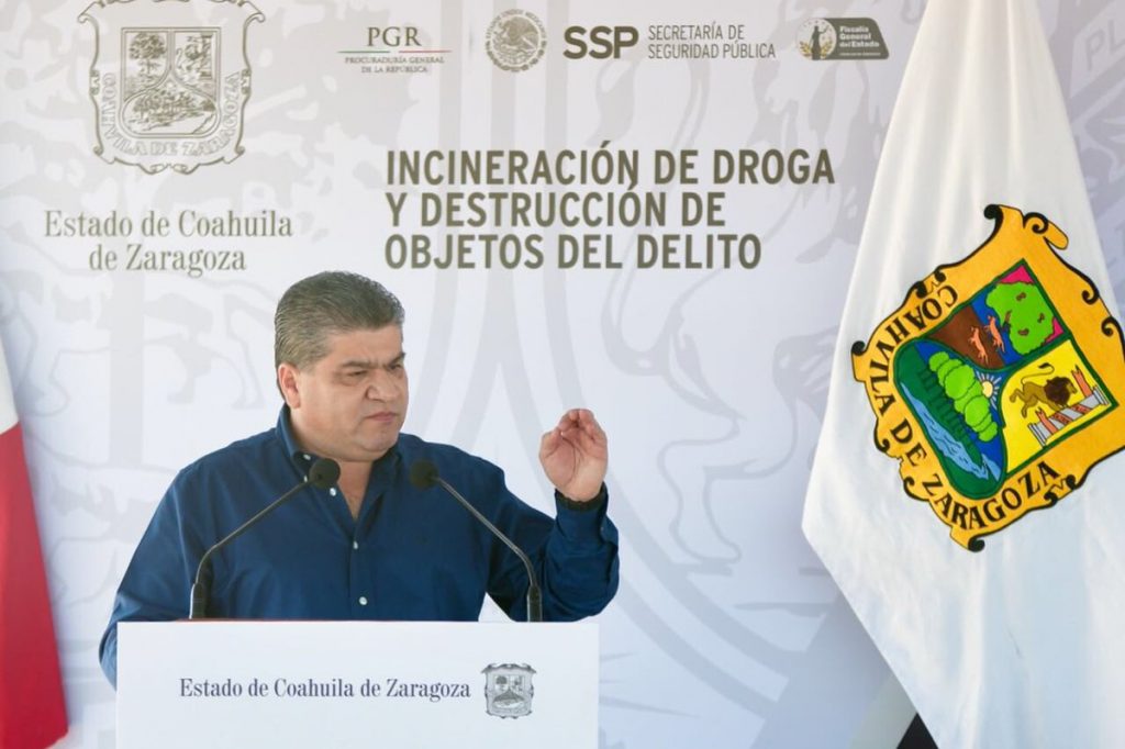 Piedras Negras.- “Coahuila sigue blindado gracias al apoyo del Ejército Mexicano, las fuerzas federales, estatales y municipales”, expresó el gobernador Miguel Ángel Riquelme Solís en la ceremonia de incineración de droga y destrucción de objetos del delito.
