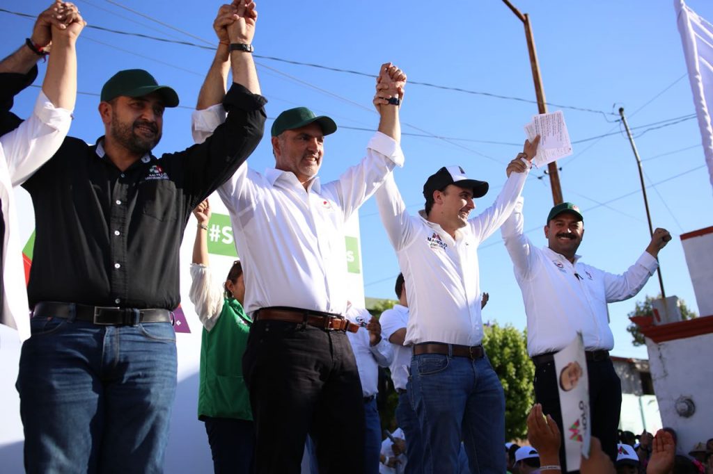“Por lo que yo vi hoy, todos nuestros candidatos el próximo primero de julio van a ganar; y me da mucho gusto que una posición tan estratégica que tiene que ver con las necesidades elementales y más cercanas de nuestra gente, de nuestra sociedad, tenga tan buena recepción ahorita que va a los hogares, ahorita que toca las puertas nuestro amigo Manolo Jiménez” destacó.