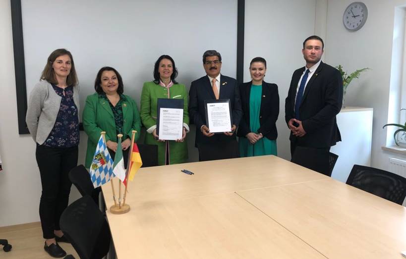 La gira continúo el miércoles en Alemania, donde el presidente Raúl Martínez Hernández y rector de la UT de Torreón signó el convenio entre la Asociación Nacional de Universidades Tecnológicas y el Centro Universitario de Baviera para América Latina, junto a Irma de Melo-Reiners, directora de este centro, también conocido como BAYLAT.