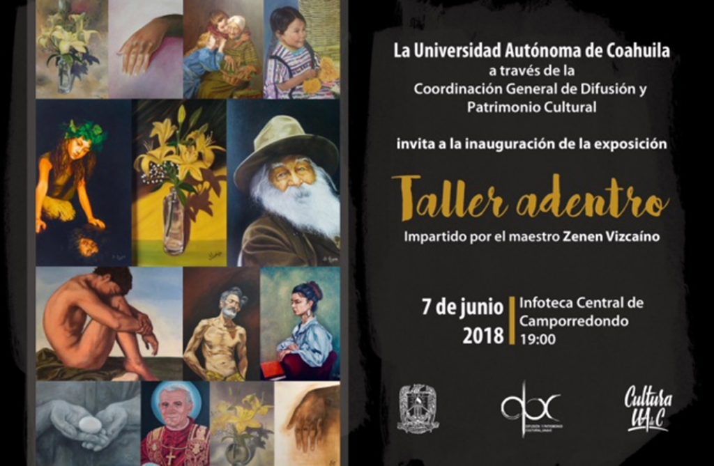 El día 7 de junio se inaugura la exposición “Taller adentro”, resultado del trabajo de los alumnos del diplomado en pintura del maestro Zenen Vizcaino que se impartió durante el presente ciclo escolar, la Infoteca Central de Camporredondo será la sede a las 19:00 horas.