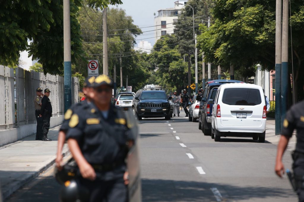 (180324) — LIMA, marzo 24, 2018 (Xinhua) — Elementos de la policía llegan a una de las viviendas del ex presidente peruano, Pedro Pablo Kuczynski, en el distrito de San Isidro, en la provincia de Lima, Perú, el 24 de marzo de 2018. Dos de las viviendas del ex presidente peruano, Pedro Pablo Kuczynski (2016-2018), fueron allanadas el sábado, luego de que un juez dictó una orden de impedimento de salida del territorio nacional contra el ex mandatario por 18 meses. Los allanamientos estuvieron a cargo del Ministerio Público y los predios se ubican en el residencial distrito limeño de San Isidro y en el distrito campestre de Cieneguilla, unos 25 kilómetros al sureste de la capital peruana. (Xinhua/Jhony Laurente/ANDINA) (an) (cr) (vf)
