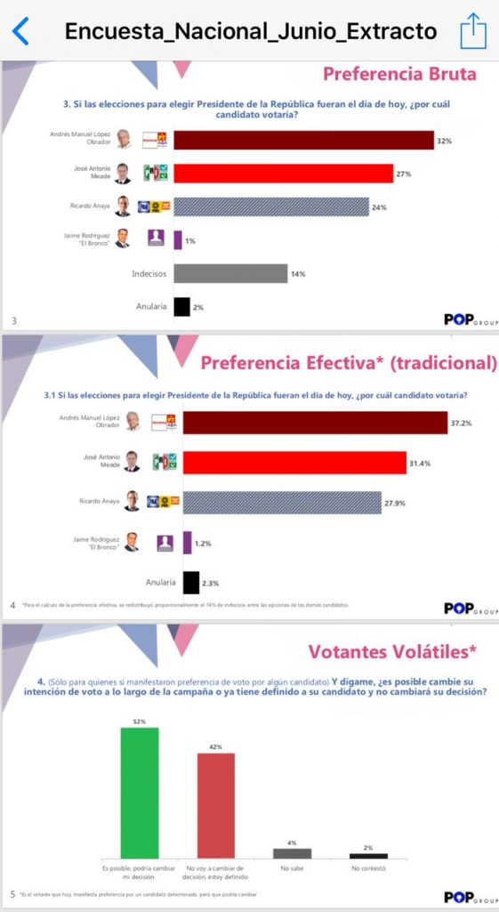 CIUDAD DE MÉXICO.- José Antonio Meade está ya a sólo cinco puntos de Andrés Manuel López Obrador, de acuerdo con una encuesta de carácter nacional realizada por la empresa POP Group, informó Quadratín.