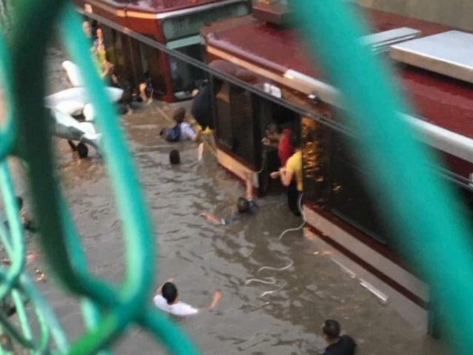 De acuerdo a las autoridades, la inundación fue en la zona de la estación Dermatológico de la Línea1 del tren ligero, donde se suspendió el servicio y los usuarios fueron desalojados y rescatados.