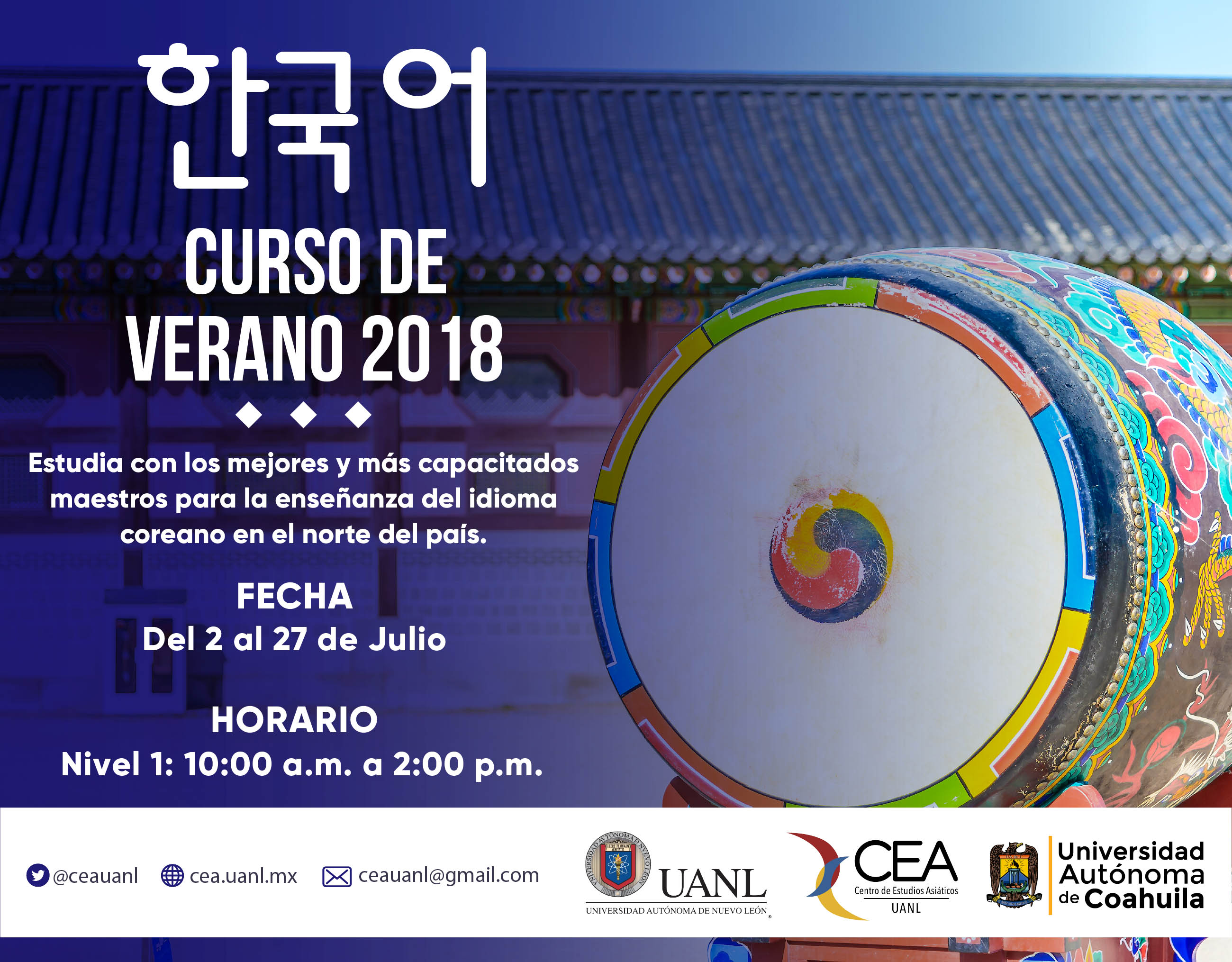Este curso de coreano, es a través de la Coordinación de Relaciones Internacionales de la UA de C, en conjunto con el Centro de Estudios Asiáticos de la Universidad Autónoma de Nuevo, León (UANL).