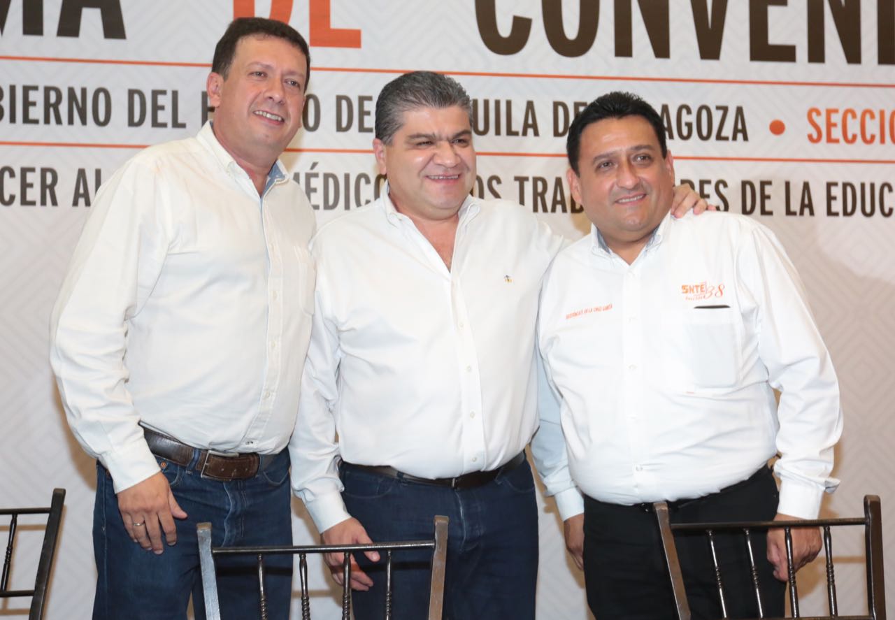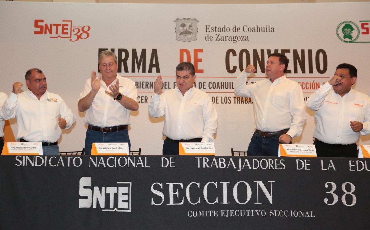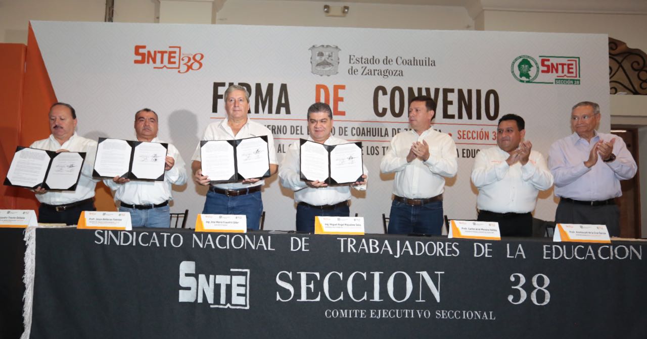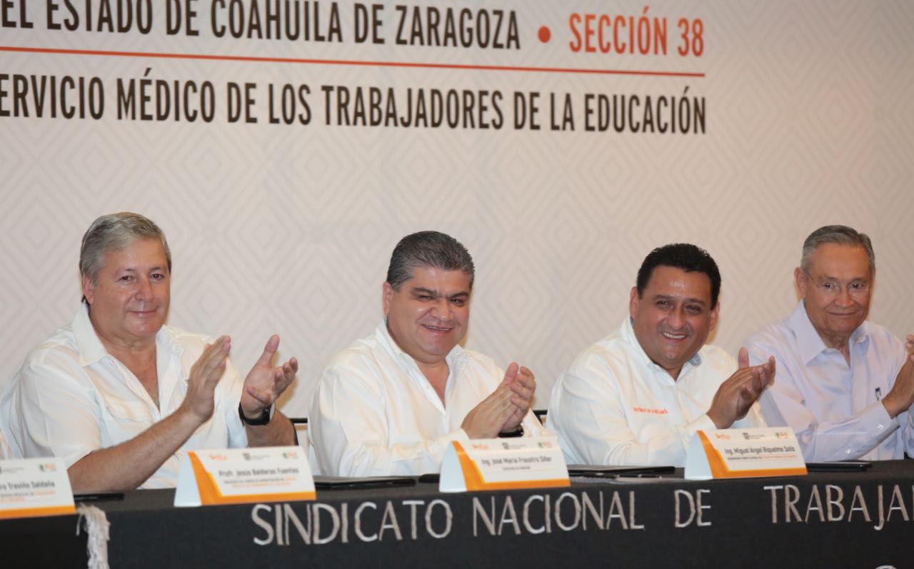 Esta firma de convenio que realizó el gobernador Miguel Ángel Riquelme Solís con la Sección 38 contiene cuatro propósitos torales: Mantener una comisión permanente para la mejora del servicio médico; profesionalización en el servicio de medicamentos; apoyo para infraestructura del Hospital del Magisterio en Saltillo; y el subsidio de la cuota del 3% por ciento y planes de protección para jubilados y pensionados que perciban hasta tres salarios mínimos.