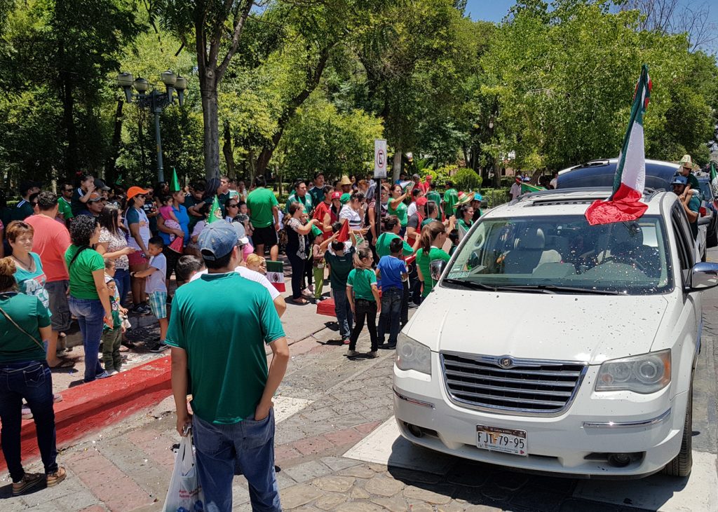 Tras el triunfo que el equipo tricolor obtuvo este sábado, al ganarle dos goles a uno a la selección de Corea del Sur, decenas de saltillenses salieron a las calles para celebrar, tan sólo unos momentos después de haber finalizado el partido que se llevó a cabo en el Rostov Arena de Rusia.