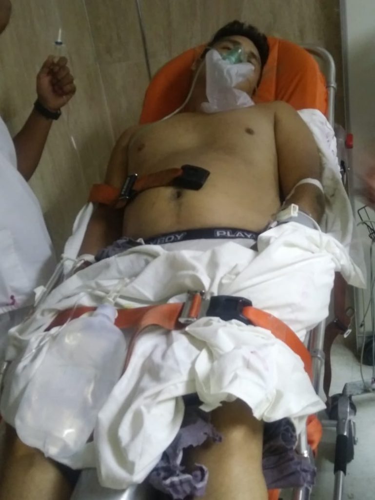 Ante la peligrosidad de la lesión, a bordo de una ambulancia, fue llevado al Hospital General de Saltillo.
