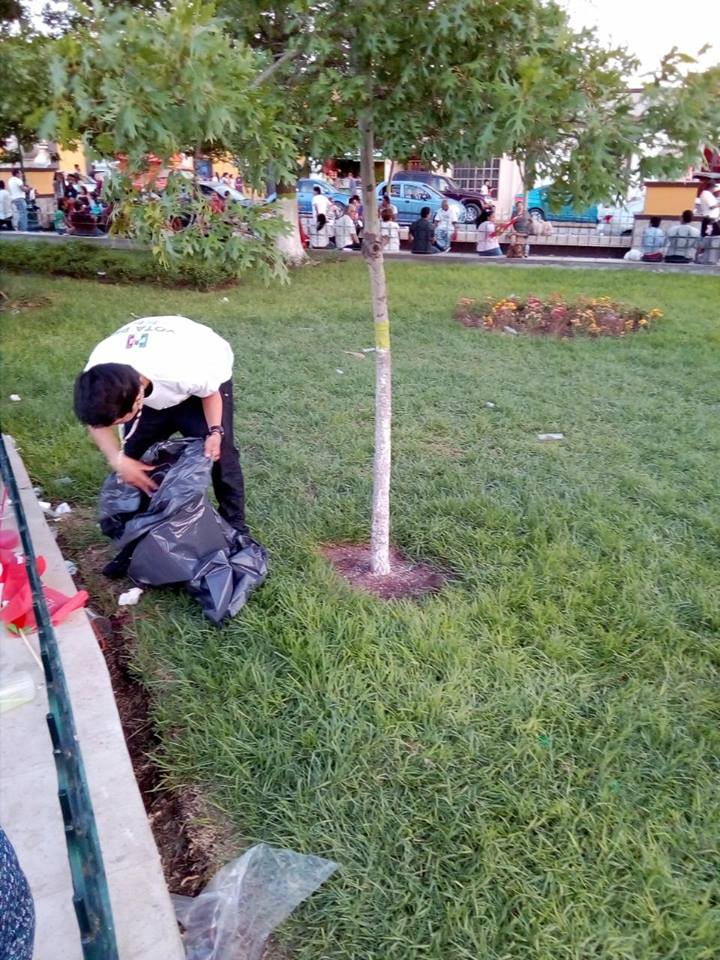 Ponen el ejemplo: priistas de Ramos barren la plaza después del cierre de su candidato