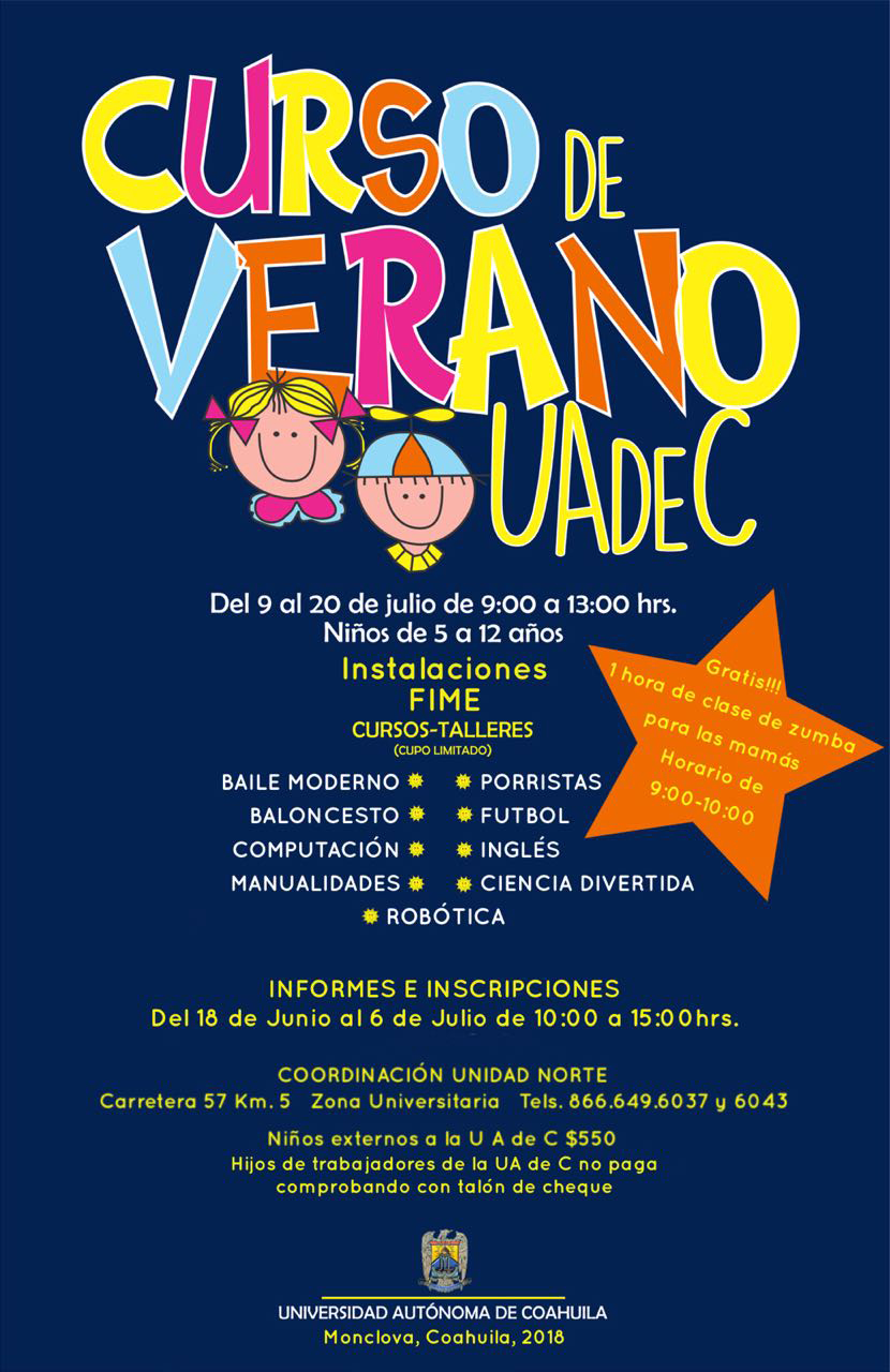Con el fin de llevar a las y los niños de Monclova actividades recreativas, deportivas, culturales y de ciencia, la Universidad Autónoma de Coahuila, a través de la Coordinación de Unidad Norte, invita a participar en los Cursos de Verano 2018.